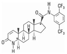 Dutasteride is chemically designated as (5α,17β)-N-{2,5 bis(trifluoromethyl)phenyl}-3-oxo-4- azaandrost-1-ene-17-carboxamide. The empirical formula of dutasteride is C27H30F6N2O2, representing a molecular weight of 528.5 with the following structural formula: